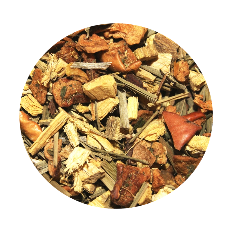 Frisk og sød te, der kan drikkes igen og igen - også som iste. Urte teen har en flot rustik bund af citrongræs og pebermynte, der i fint samspil med lakridsrod og søde æblestykker giver en forfriskende og behagelig smagsoplevelse. En yderst populær te for såvel den unge, som den ældre te drikker.