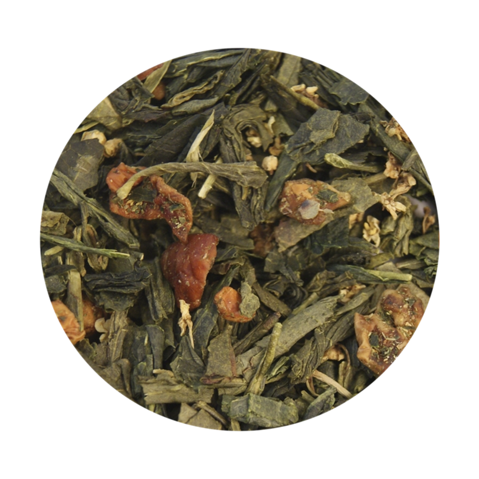 Ingredienser: Grøn Sencha te (74%), tørrede æblestykker (16%), hyldeblomster (6%) og aroma.