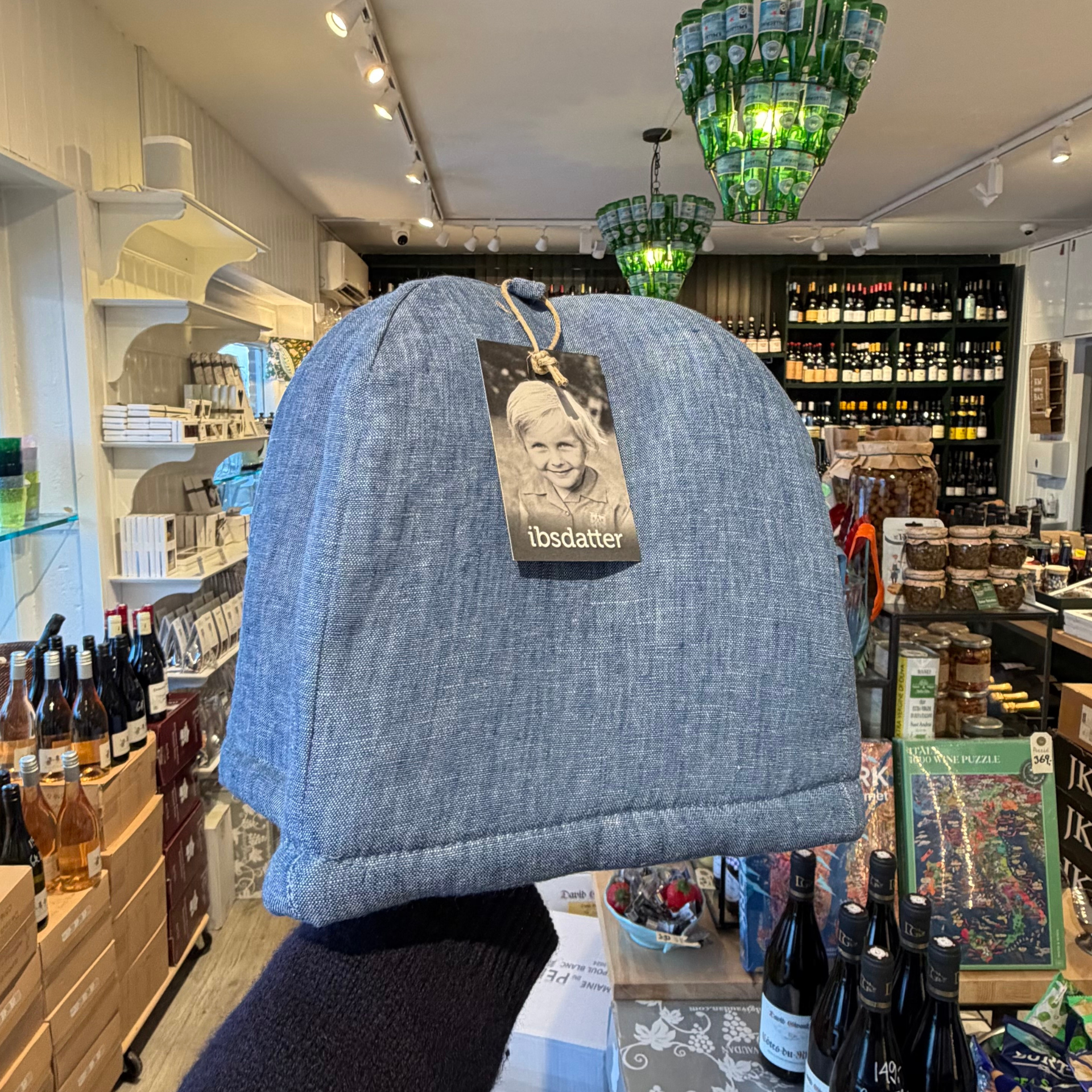 Fin blå tehætte fra Ibsdatter som passer perfekt til en tekande på 2,5L.