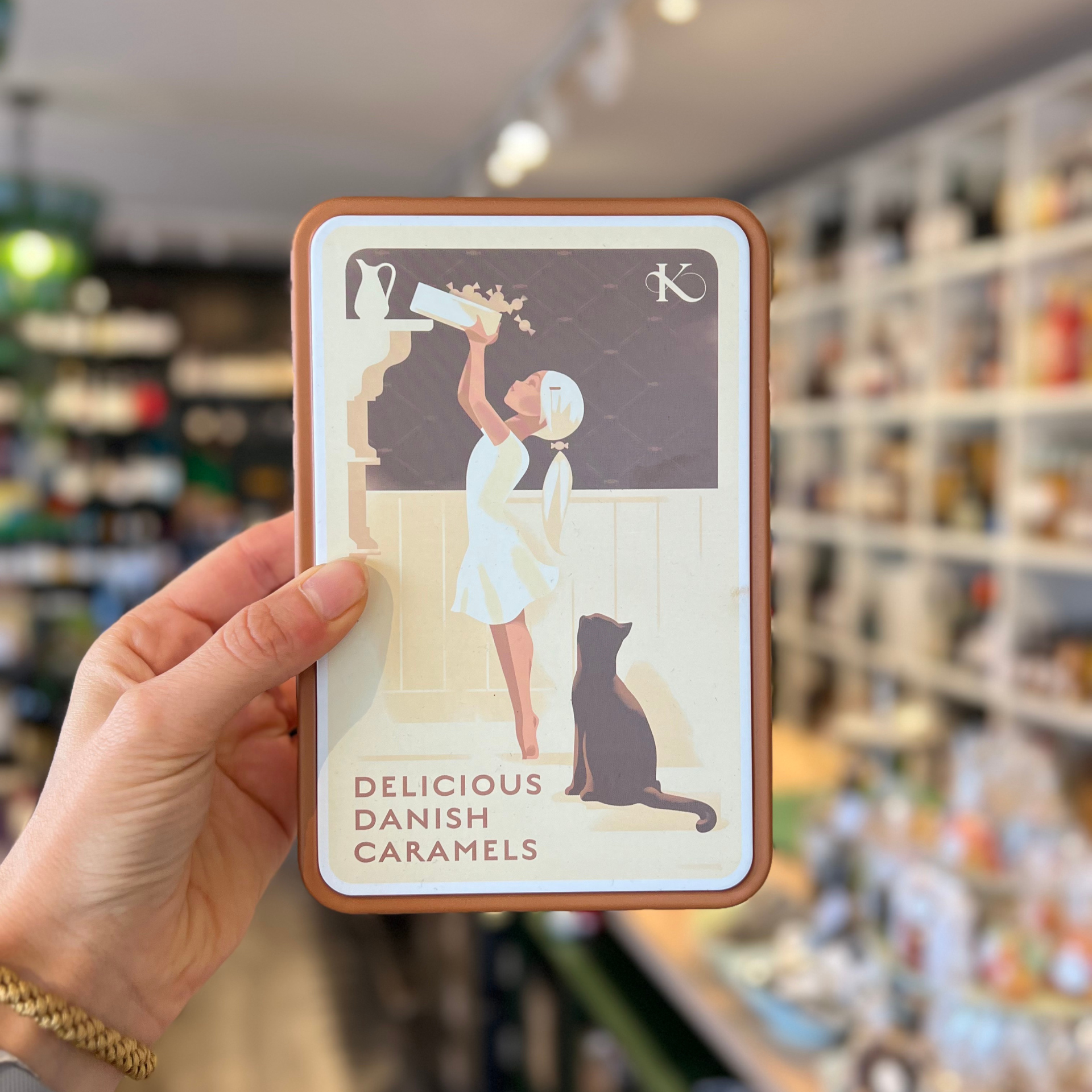 Den dygtige og talentfulde kunster Mads Berg har tegnet det smukke motiv til denne dåse, eksklusivt for Karamel Kompagniet. Illustrationen er trykt direkte på dåsen, der indeholder 236g Gudhjem - Klassisk blanding, med Klassisk Fløde, Klassisk Lakrids og Klassisk Chokolade karameller.