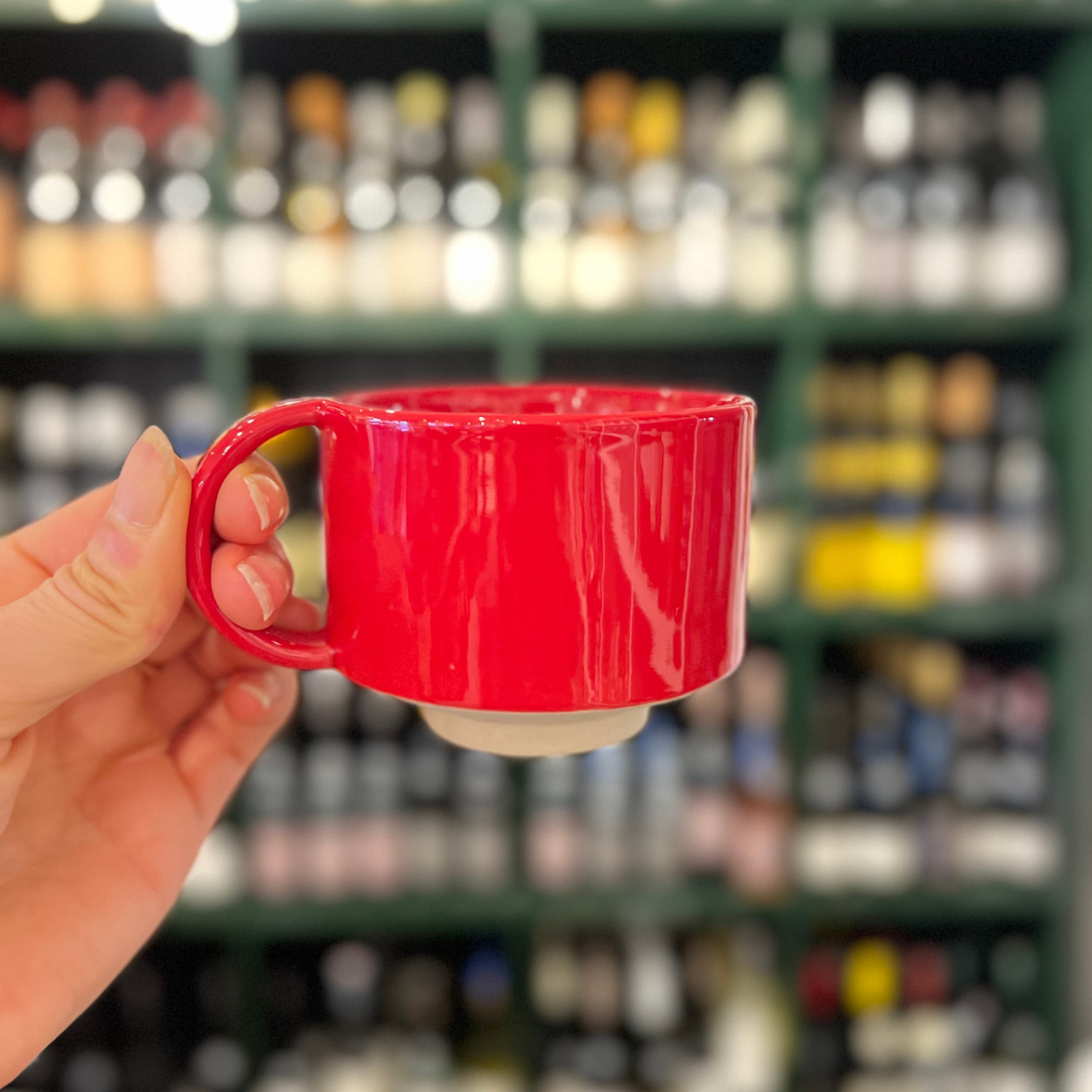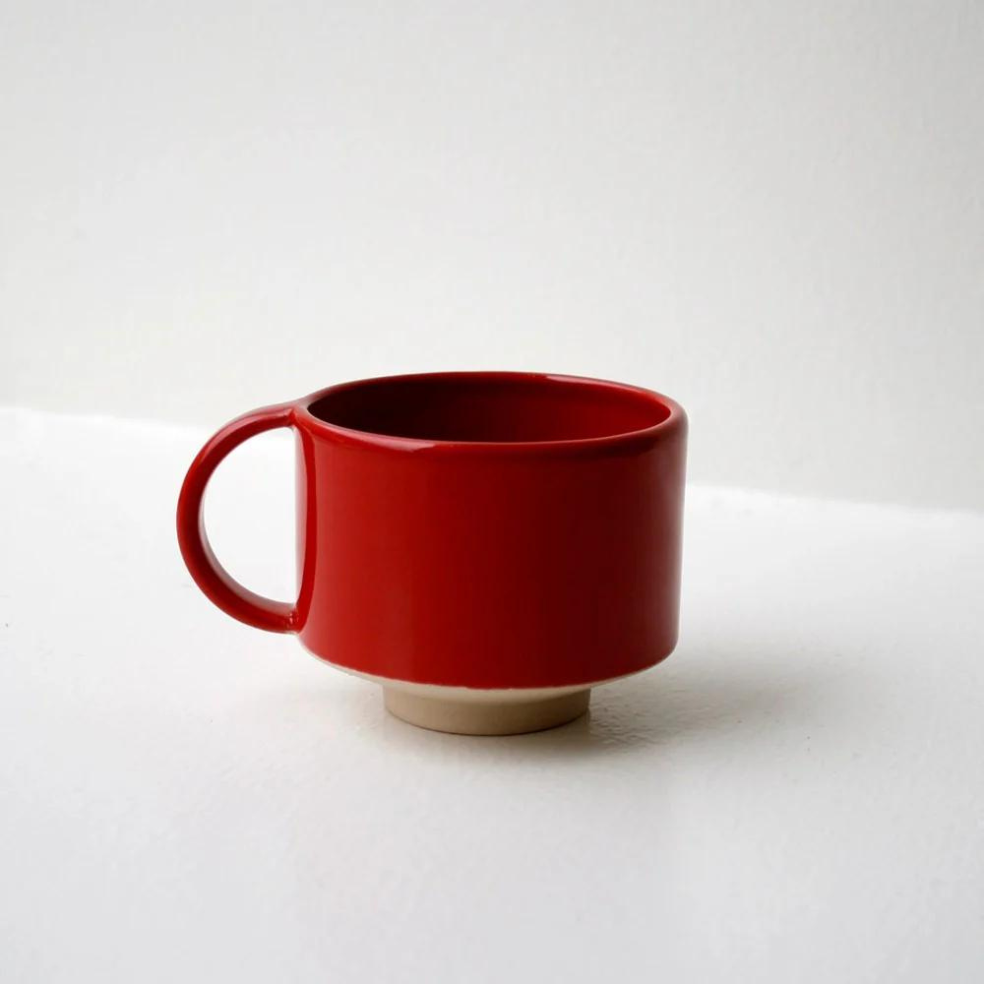 Kop med hank er designet til hverdagsbrug med ønsket om at designe en enkel, stabelbar og funktionel kop. Koppen er støbt i hånden og glaseret i et nøje udvalg af glasurer med forskellige udtryk. Fordi alt laves i hånden vil der forekomme små forskelligheder.