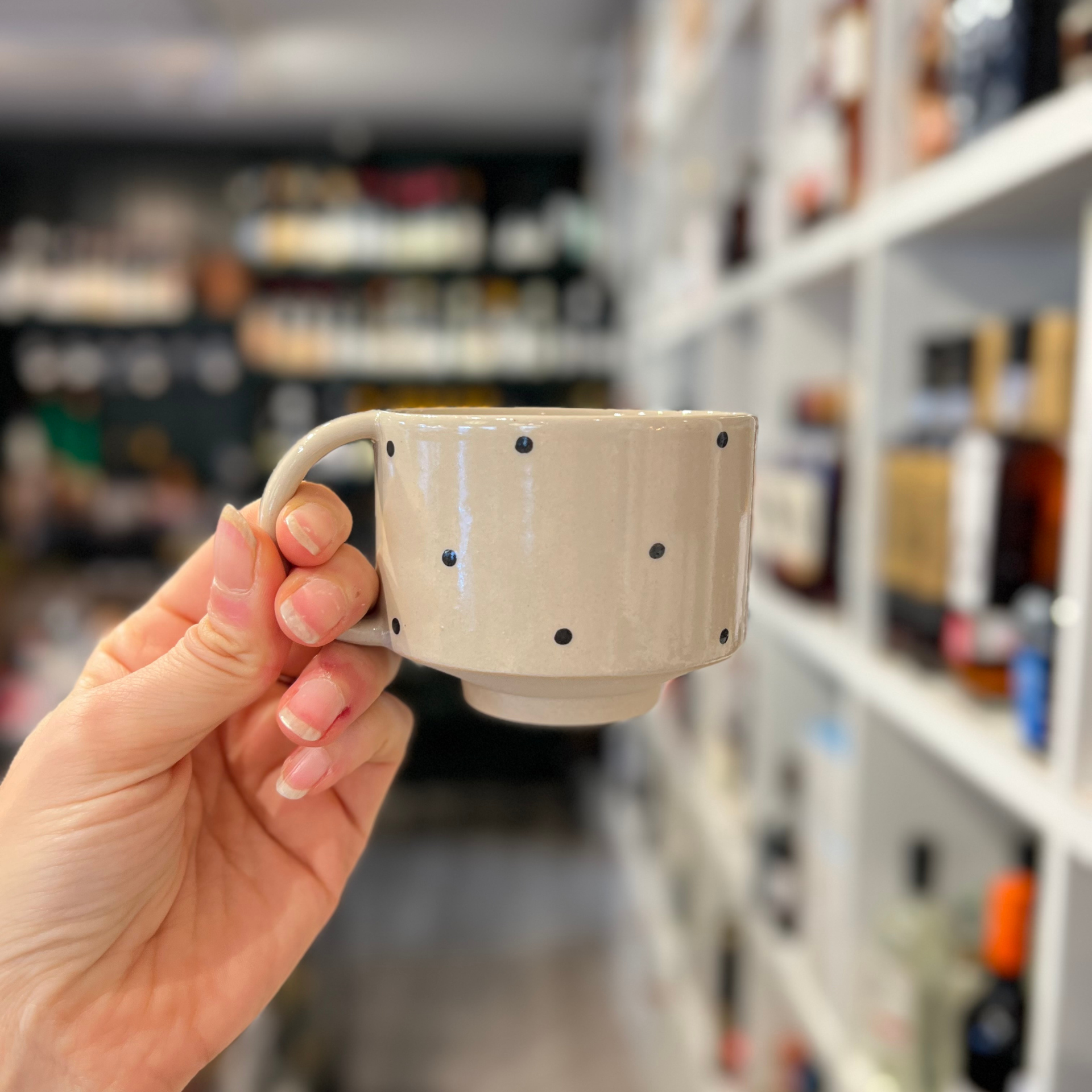 Kop med hank er designet til hverdagsbrug med ønsket om at designe en enkel, stabelbar og funktionel kop. Koppen er støbt i hånden og glaseret i et nøje udvalg af glasurer med forskellige udtryk. Fordi alt laves i hånden vil der forekomme små forskelligheder.