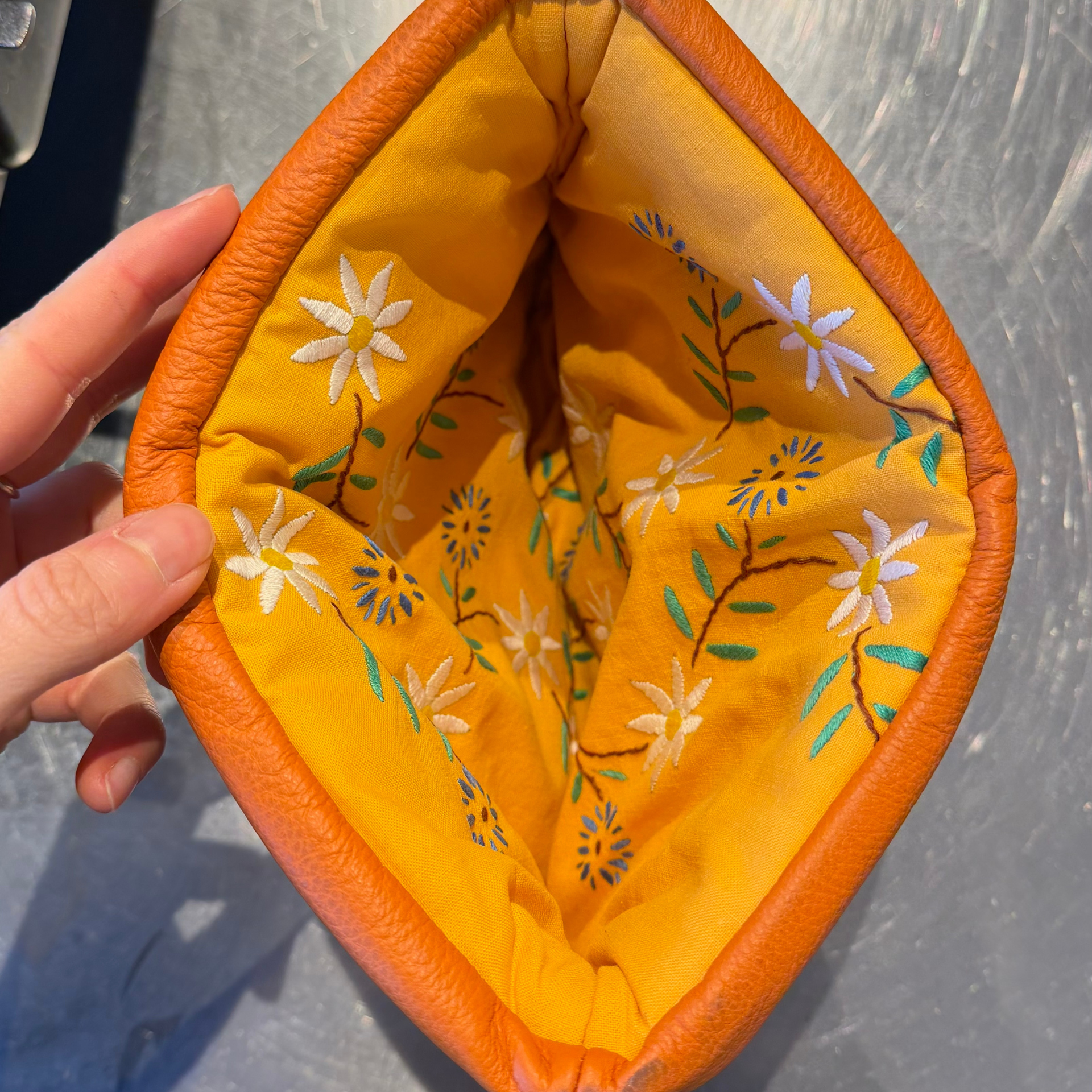 Recraft Tehætte, Skind Orange med gul blomstret for