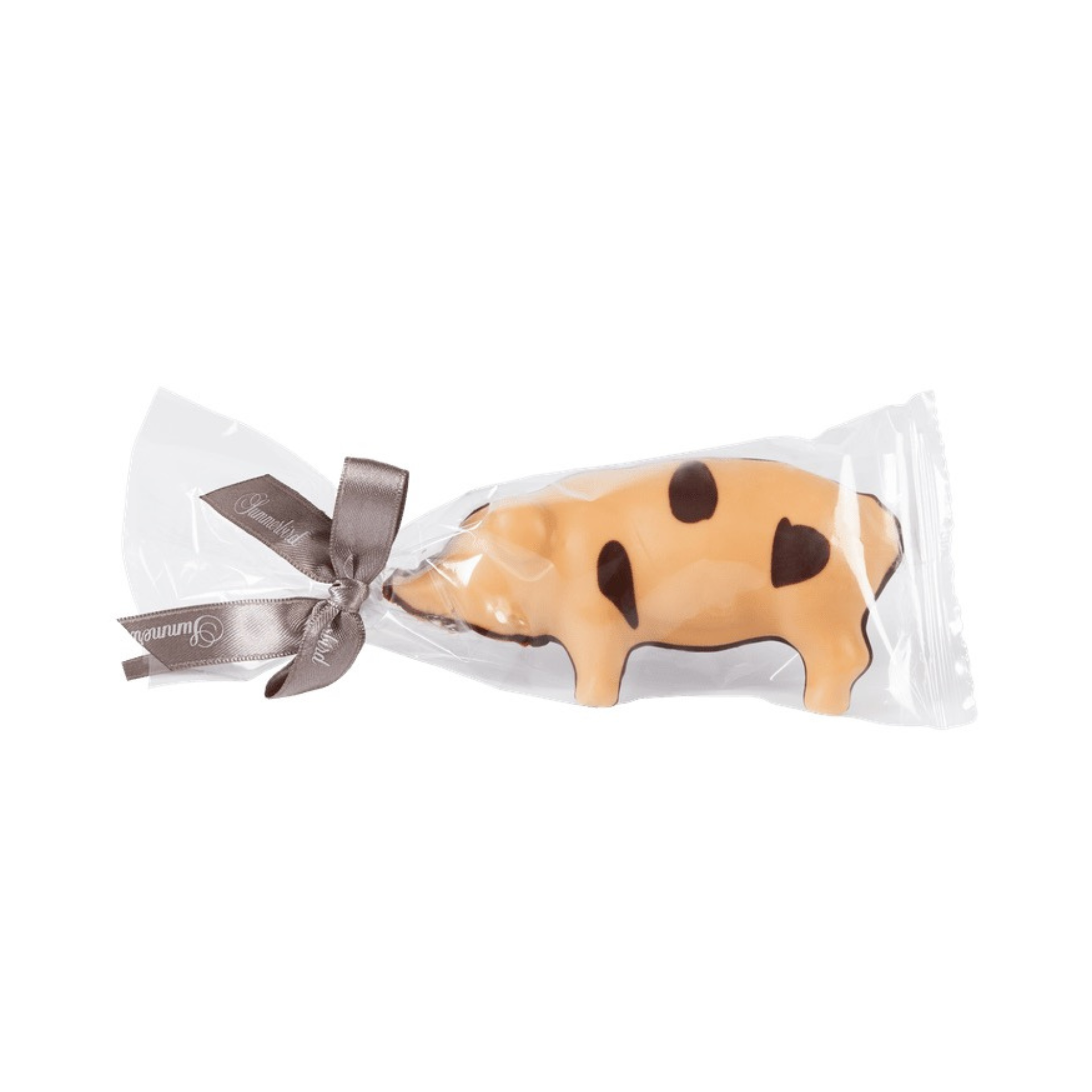 Julegris af ren marcipan, lavet på stenvalsede middelhavsmandler, overtrukket med vores prisvindende og populære Amber Classic-chokolade og afslutningsvist dekoreret med mørk chokolade Amazonas 61%.