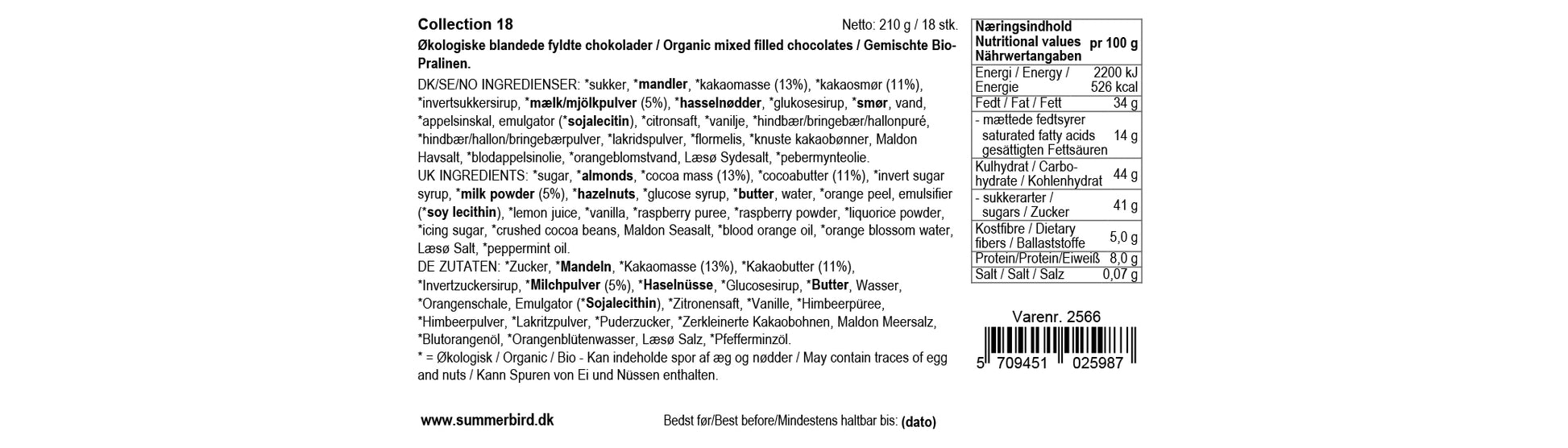 Klassisk, raffineret og smuk gaveæske med 18 stykker af vores ikoniske økologiske fyldte chokolader.